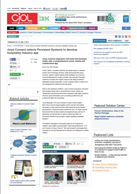 CIOL : Information Technology News / 朝日新聞デジタル (2014)に掲載されました。