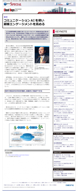 ITproSpecialに掲載されました 2026 1/28 お知らせ 2017年4月20日 コミュニケーションAIで顧客エンゲージメントを高める東芝のコミュニケーションAI「RECAIUS(リカイアス)」の陣屋での実証実験についてITproSpecialで紹介されました。 お知らせ 世界的な経済誌「Forbes」に掲載されました。 日本経済新聞に北国銀行との提携についての記事が掲載されました