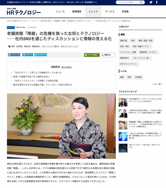 「企業研修、採用、評価、人材開発、労務・福利厚生のナレッジコミュニティ」を提供する日本の人事部「HRテクノロジー」に掲載されました。