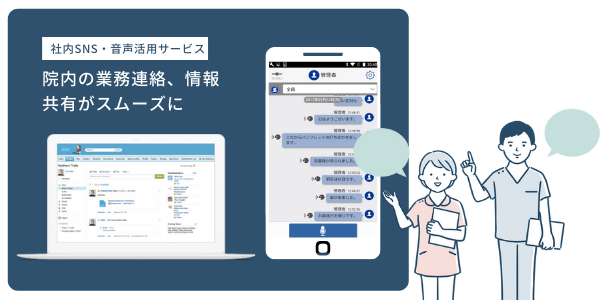 PHSなどを使った対個人間の連絡業務を、社内SNSを活用して、関係者全員に対する情報共有と記録を行うように変革できます。