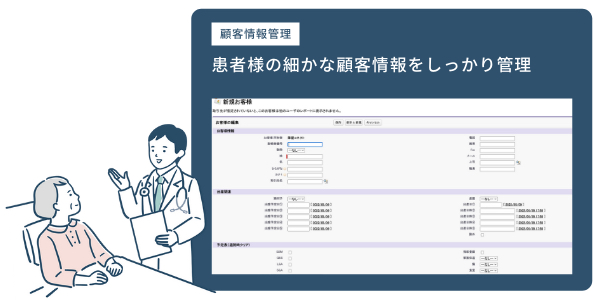 患者様の細かな顧客情報(アレルギー、身長、体重、血圧、基礎体温、家族情報など)を時系列で確実に蓄積することができるようになり、患者様の満足度が向上します。