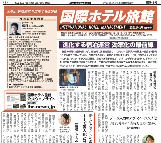 国際ホテル旅館(2023年8月20日)に掲載されました