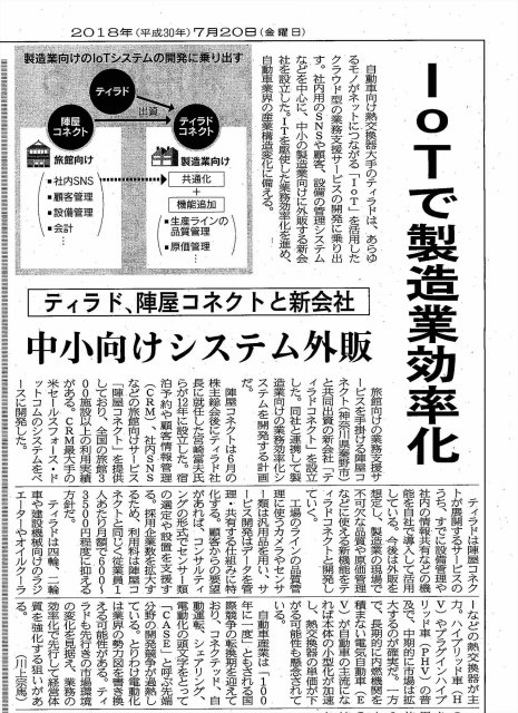 日経産業新聞に掲載されました(2018/7/20)